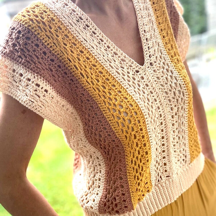 Dit V-hals topje is alweer een topper :-) snel en makkelijk te haken. Op 13 augustus kan je dit topje in DEINZE komen haken. Onderaan kan je uur kiezen welk uur vanaf 6 inschrijvingen gaat de workshop op dat uur door.